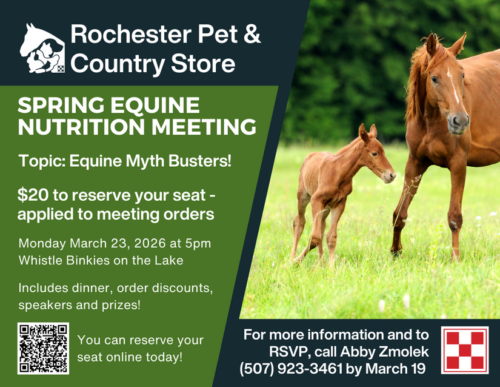 We are your locally owned one stop shop for all of your animal and pet supplies in Rochester MN. As the largest Purina dealer in this area we have access to years of Purina research and are able to bring you the finest feed ingredients for all of your animal needs. From Dogs and Cats to Horses and Chickens you will find it all at Rochester Pet & Country Store.